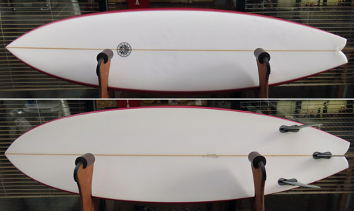 ライアン・ラブレイスシェイプのポイント・コンセプトのユーズドボードです。ハルのスムースな滑りを連想させるボトムとレールのフォイル。ノーズコンケーブとアッシュトレイテールはノーズライドを安定させます。フットマークありますが浅めです。ボトムは小さな浅いヘコミがいくつかありますが、きれいなコンディションです。